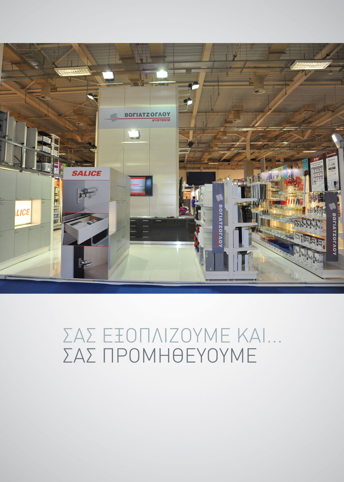 Η κεντρική ιδέα, το concept του περιπτέρου μας αποτυπωνόταν ξεκάθαρα μέσα από το μότο. “ΣΑΣ ΕΞΟΠΛΙΖΟΥΜΕ ΚΑΙ… ΣΑΣ ΠΡΟΜΗΘΕΥΟΥΜΕ”
