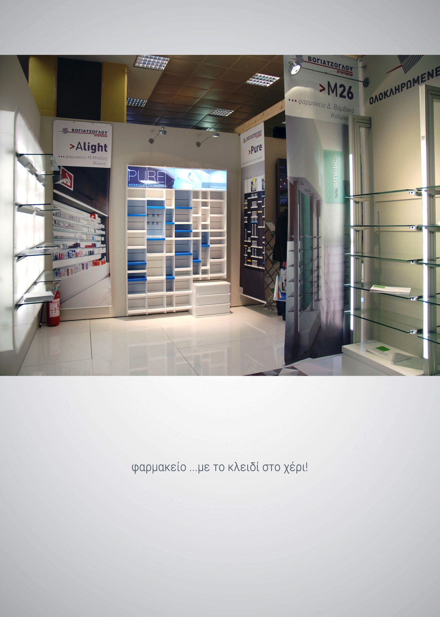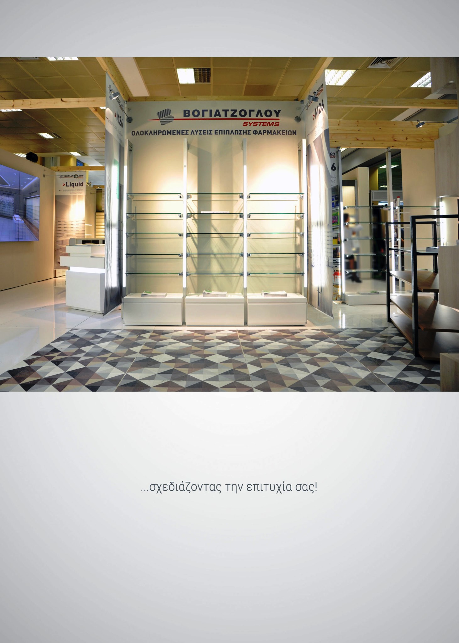 Αυτή ακριβώς ήταν και η φιλοσοφία του φετινού μας εκθεσιακού χώρου που συνδύασε την ευρύτατη γκάμα επίπλων και συστημάτων που διαθέτει η Βογιατζόγλου Systems με την οικειότητα και την προσωποποιημένη προσέγγιση που επιβάλλουν τα νέα δεδομένα. Είναι σε όλους σαφές πως η συσσωρευμένη εμπειρία μας είναι και η βάση των προτάσεών μας προκειμένου ο κάθε φαρμακοποιός ξεχωριστά να βρει την δική του ατομική ταυτότητα στον χώρο και να πετύχει τους επαγγελματικούς του στόχους.