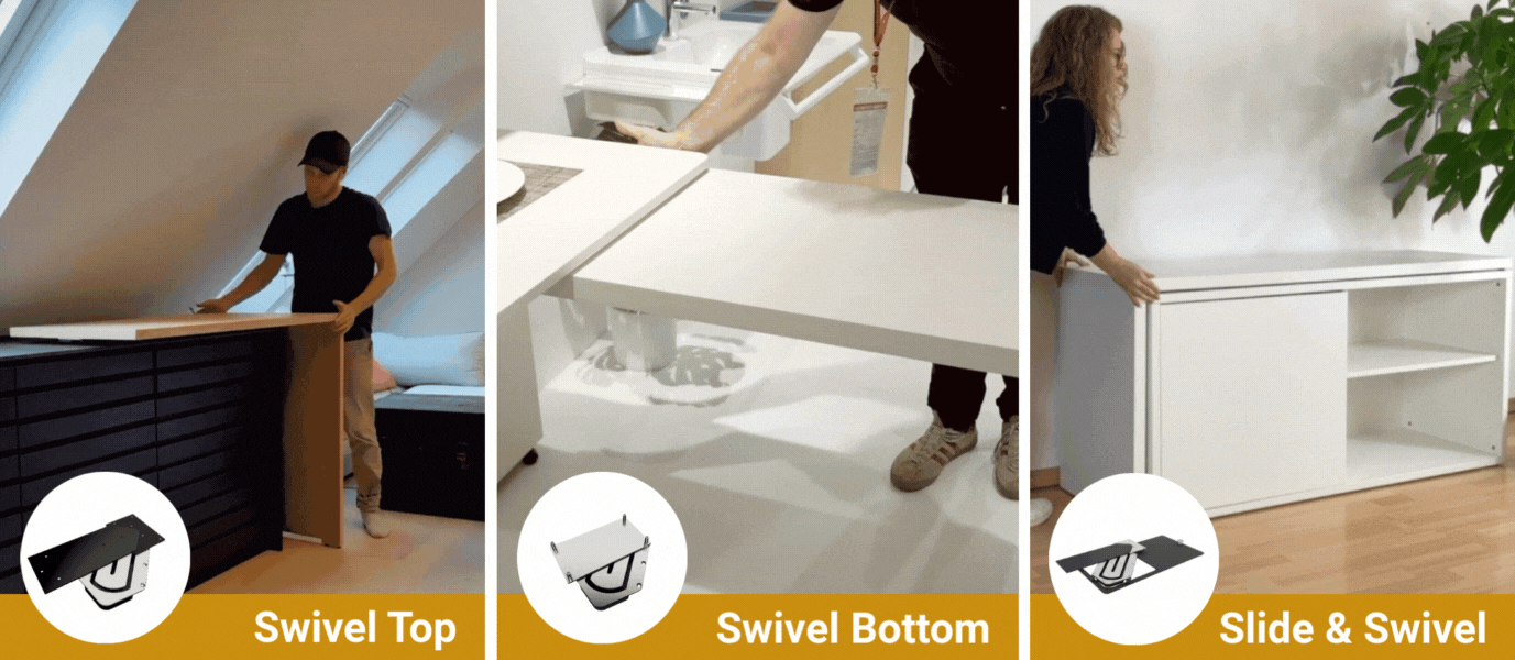 • Swivel Top – Ολίσθηση & περιστροφή επιφάνειας πάνω από σταθερή βάση