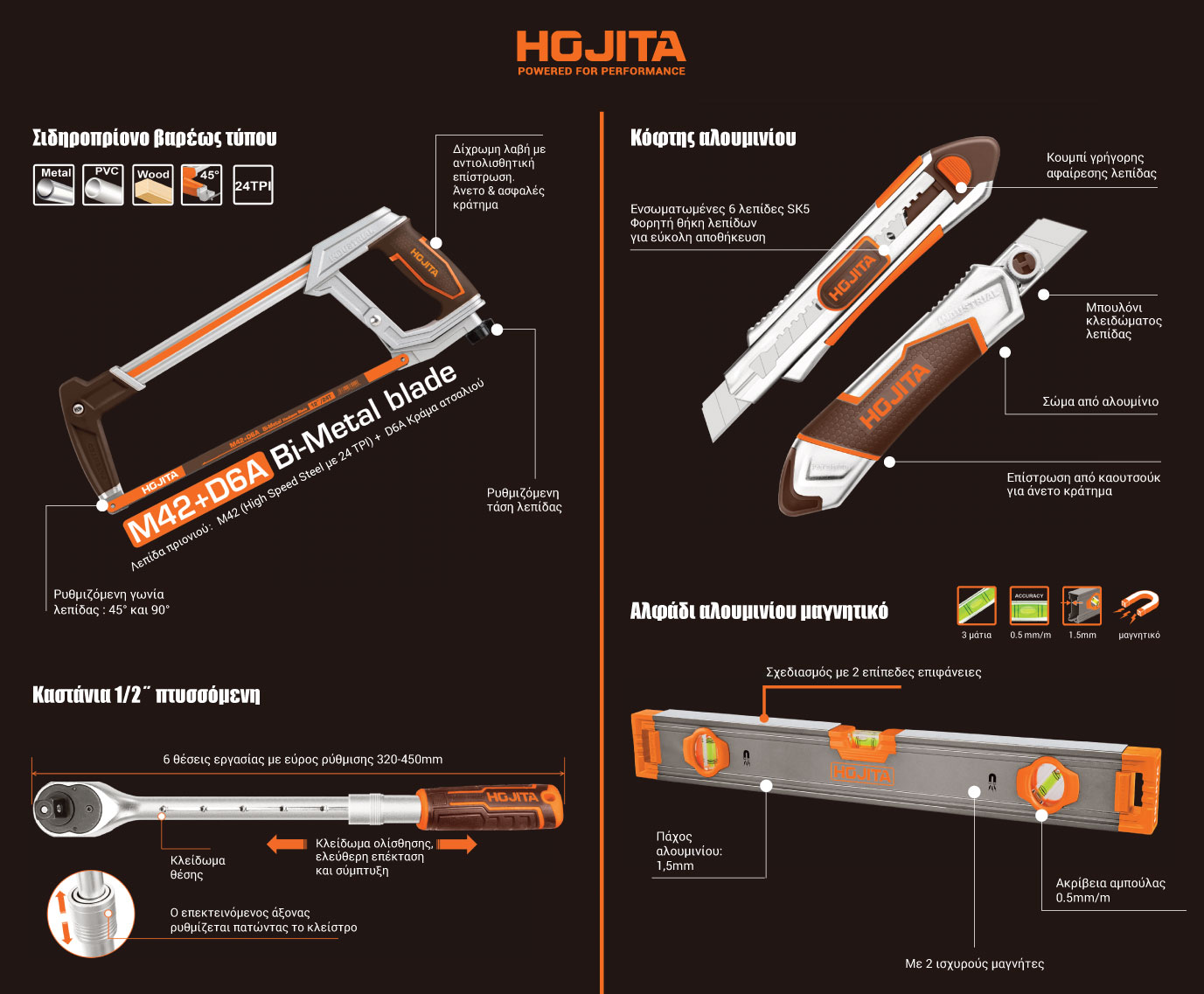 Η δύναμη της HOJITA δε σταματά στο ηλεκτρικό εργαλείο. Γνωρίστε την πλήρη σειρά εργαλείων χειρός HOJITA!
