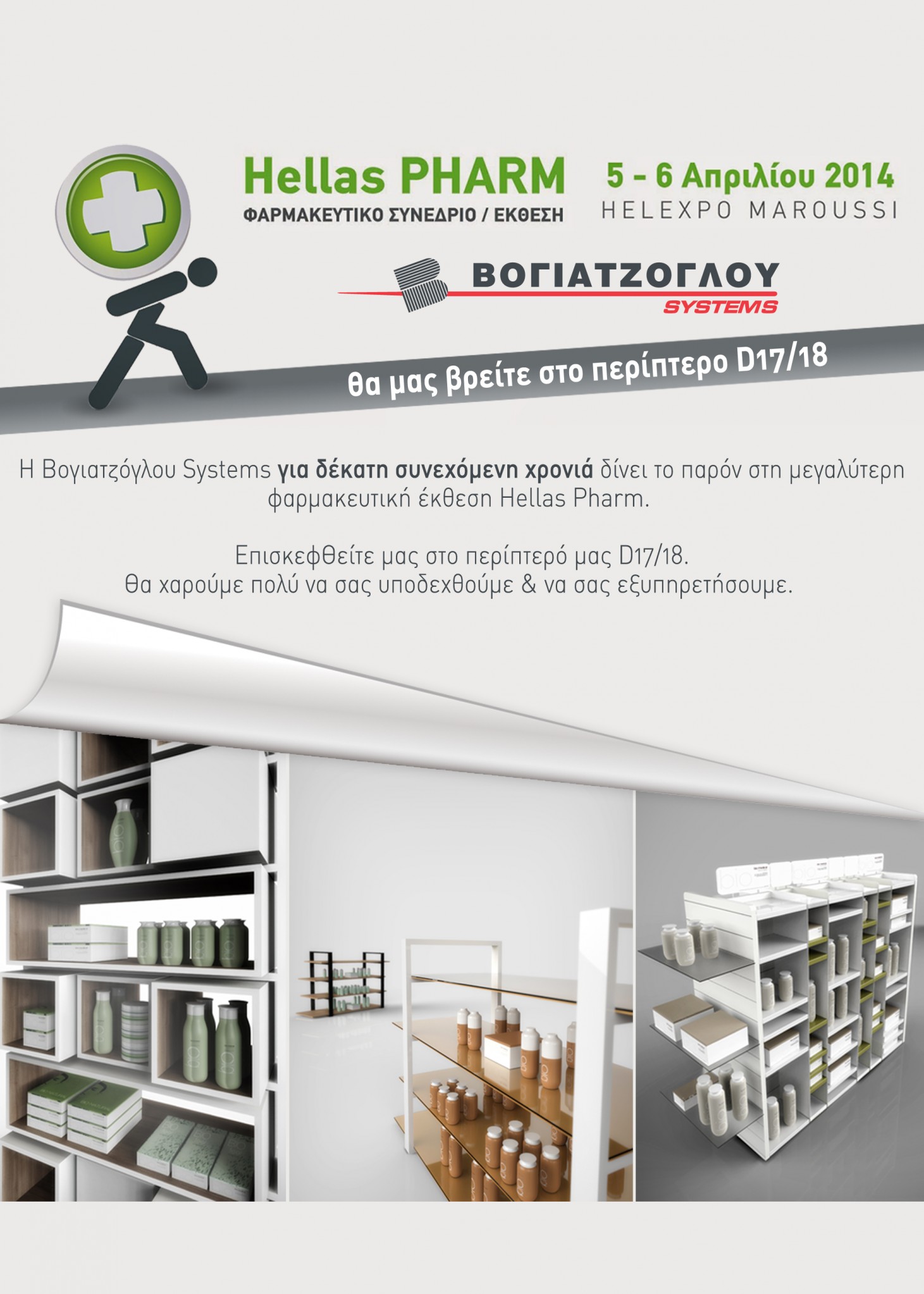 Η εταιρία μας δίνει το παρόν για δέκατη συνεχή χρονιά. Κύριος άξονας της φιλοσοφίας μας είναι να δίνουμε στους φαρμακοποιούς την πληρέστερη δυνατή πληροφόρηση που χρειάζονται για να πάρουν την καλύτερη δυνατή απόφαση για το χώρο τους. Στη Hellas Pharm μας δίνεται η δυνατότητα να ενημερώσουμε Έλληνες φαρμακοποιούς για όλες τις καινοτομίες στο χώρο επίπλωσης φαρμακείων αλλά και να ακούσουμε τις ειδικές ανάγκες τους και να προτείνουμε λύσεις.