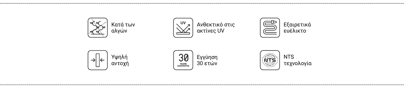 Με εξωτερική επίστρωση SKY TECH που ενισχύει την αντοχή σε φθορές και υπεριώδη ακτινοβολία, και καθιστά την επιφάνεια ολισθηρή για εύκολο χειρισμό, ακόμη και σε γωνίες.